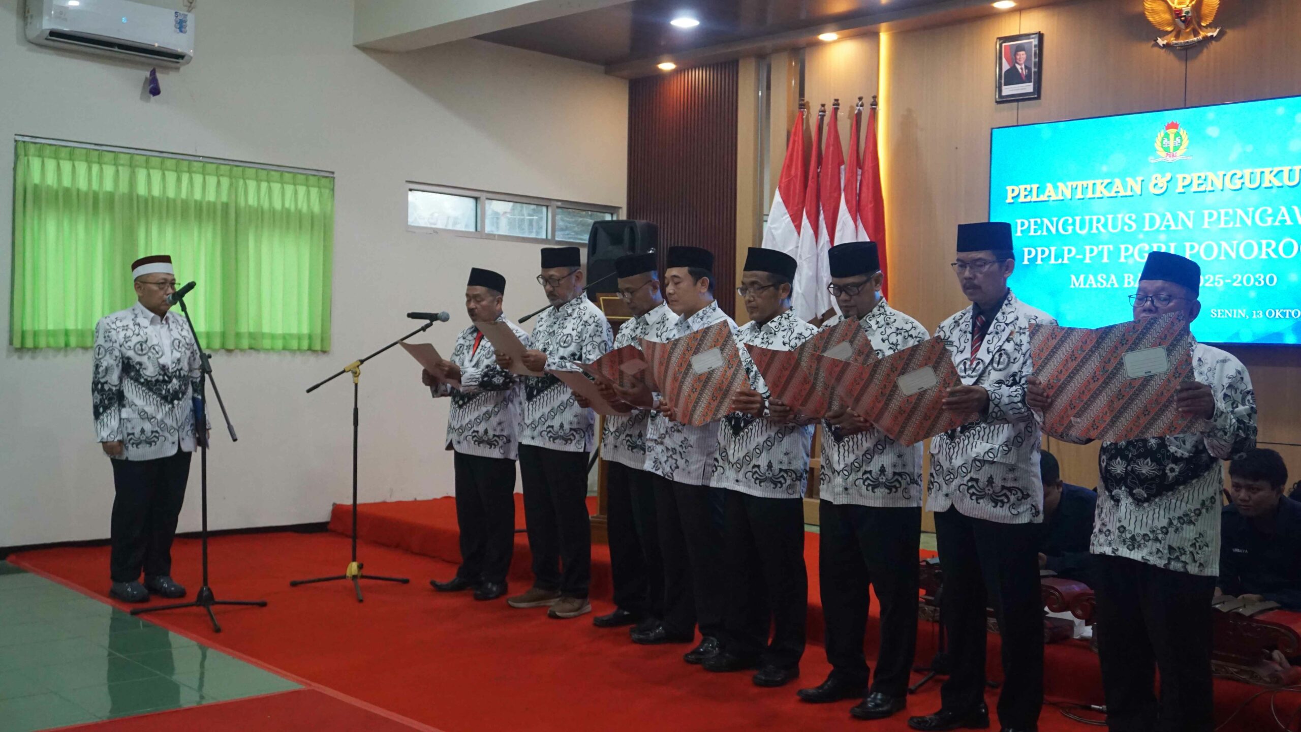 Pelantikan dan pengukuhan tersebut berdasarkan Keputusan PB PGRI Nomor 41/Kep/PB/XXIII/2025 tentang Pengangkatan Pengurus dan Pengawas PPLP-PT PGRI Ponorogo. SK tersebut dibacakan oleh Sekretaris Umum PGRI Jawa Timur, Drs. Edi Wuryanto, M.Pd. M.M.