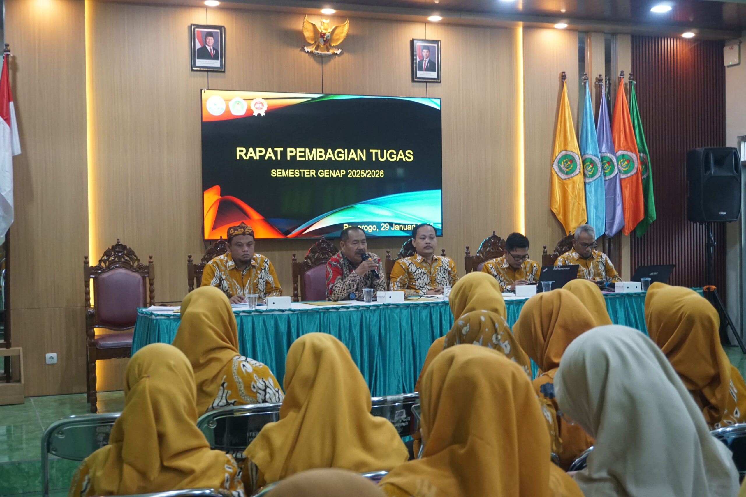 Rapat Pembagian Tugas Mengajar Semester Genap 2025/2026 telah digelar, Kamis (29/1/2026). Dalam momen ini, rapat diselenggarakan di Gedung Graha Saraswati dengan dihadiri ketua PPLP-PT PGRI Ponorogo, pimpinan STKIP PGRI Ponorogo, seluruh dosen, dan karyawan STKIP PGRI Ponorogo.