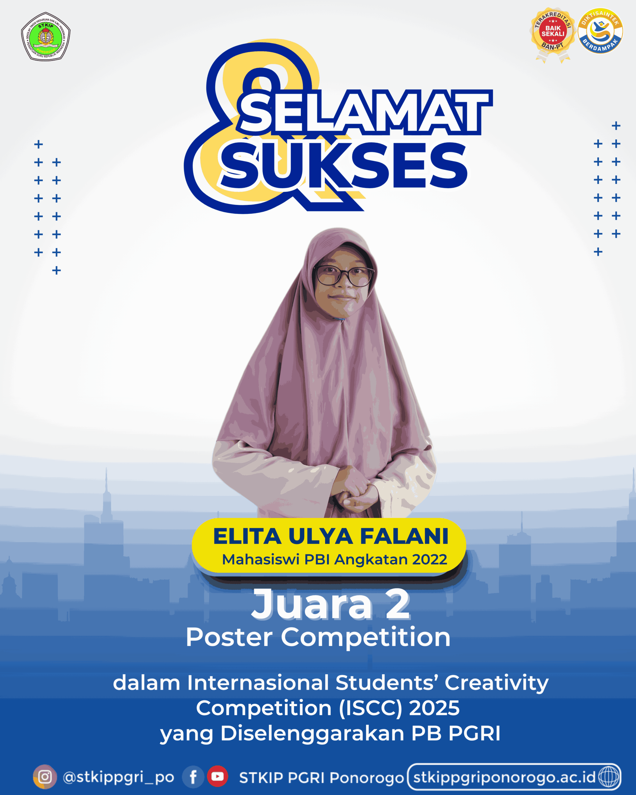 Elita Ulya Falani, mahasiswa Pendidikan Bahasa Inggris (PBI) STKIP PGRI Ponorogo berhasil meraih juara 2 dalam lomba desain poster “Internasional…